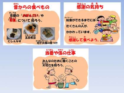「とうふのそぼろにのとうふがおいしかったです。」3年生。「ごまずにが,sんみがきいていちぇとってもおいしかったです。ごまがとてもいいかんじでした。とうふのそぼろにのとうふがふわふわしていておいしかったです。」4年生。「とうふのそぼろにのとりにくやとうふに味がしみ込んでいて,とても美味しかったです。ごまずにのすの味がおいしかったです。」6年生。「全部おいしかったです。」つくし学級。