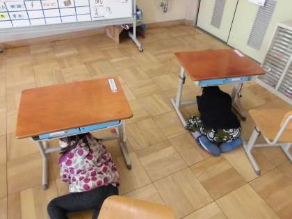 実際に地震が起こった際,騒がず落ち着いて行動できるよう,真剣に訓練に取り組んでいました。