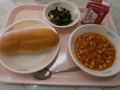 「パンがぜんぶ たべられました。ポークビーンズおいしかったです。」つくし