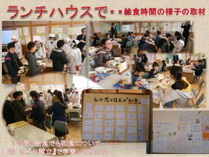 今日は,今年度の総合的な学習で和食について学習をし,地域の料亭「魚三楼」さんに教わった白みそを使った『みそ汁』作りをして 教職員をおもてなししてくれた5年生が,毎日新聞社の記者の方の取材を受けました。教育委員会からも視察に来ていただき,自慢のスチコンで作った『さわらの西京焼き』を食べながら,和食について調べたポスターの掲示も見ていただきました。