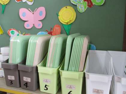 傘や給食のおぼんなど,学校生活に必要なものがそろってきました。
