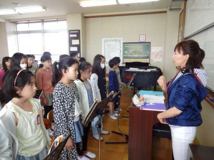 今日は,手をたたく音や,声を隣の人にスムーズに伝達していくゲームを楽しんだ後,発声法を教えてもらいました。