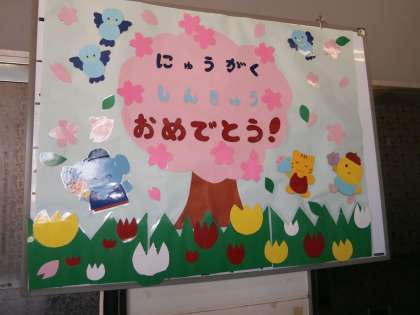 4月は,入学・進級のお祝い掲示です。