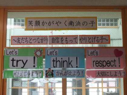 教職員も「try」「think」「respect」「あたりまえのことをあたりまえにする」を合言葉に,子どもたちが様々な成功体験を積み上げ,笑顔をきらきら輝かせることができるように支援していきたいと思います。