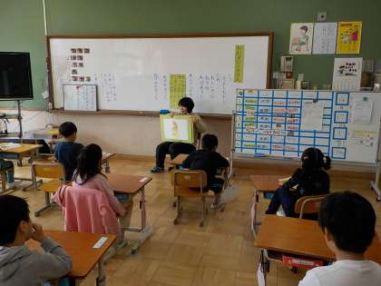 1年生の教科書に載っているお話なので,1年生は教科書を開いてニコニコしながら取り組んでいます。