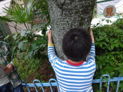 「葉は空が見えないくらい多いよ。元気があるね。」