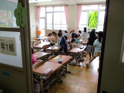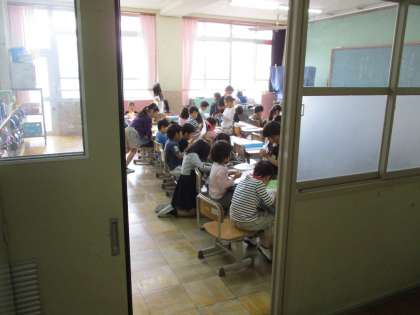 学校探検が終わり,戻ってきた子どもたちをそっとのぞいてみると…