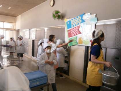 5月を迎え給食室のサービスホールの壁面も模様替え