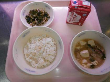 今日の給食は,とうふ料理『豚肉ととうふのごま煮』でした。とうふの煮崩れを防ぐ調理の方法で,抜群においしくできたので1年生の教室でも「これ(豚肉ととうふのくず煮)めっちゃおいしい。」「にがてと思ったけど 食べたらおいしかった。」「しいたけもがんばって食べたら食べられた。」と好きな子どもが多かったです。強敵「しいたけ」も少しずつ挑戦して食べられるようになってほしいです。