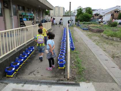 最後にみんなで植木鉢を並べ,「芽がでるかなあ。」「水もう少し欲しいかな。」と友だちと相談しながら,期待に胸を膨らませていました。大切に大切に育てて欲しいです。