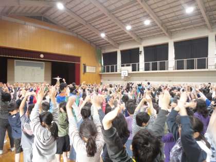 初めての朝会でした。メロディタイムで「ビリーブ」を歌いました。歌う姿勢や口の開け方,声の出し方まで細かく指導してもらいました。何より楽しみながら取り組んでいる姿が印象的でした。今後の合唱が楽しみです♪
