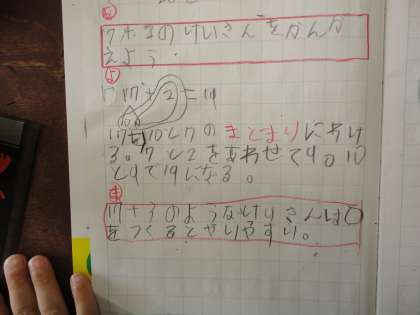 たし算の学習をしました。今日は「17+2」の計算の仕方をみんなで考えました。数え棒で「17」→「10と7」のまとまりにし,どうすれば正確に素早く解けるかを話し合いました。とてもいい意見がたくさん出ていました。明日からその考えを活かして,計算問題に取り組んでいきます。
