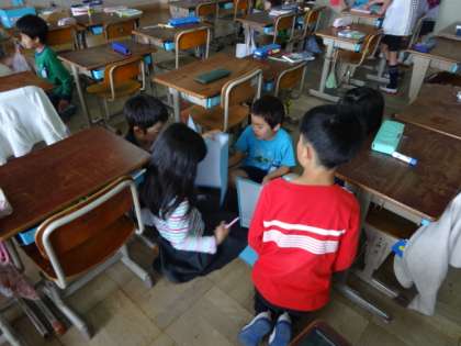 今日の体育は,地面に水たまりがあったので教室で行いました。