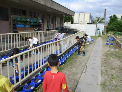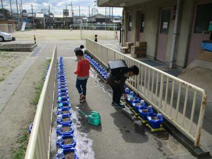 自分のだけでなく,1年生全員分の水もあげてくれました。やさしい1年生でした。