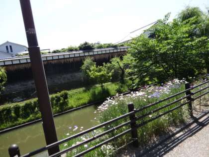 十石舟や三十石舟が通る川を横に進んで子楽園で一回目の休憩です。