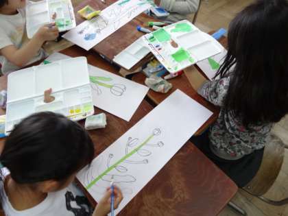 ポイントは,植物と色の重なりを考えて彩色しました。