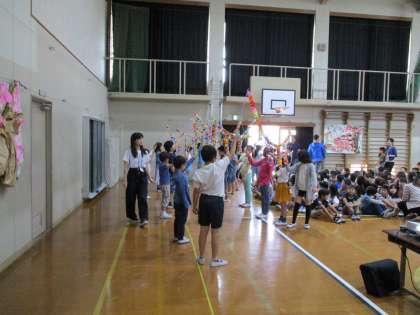 お迎えは,計画委員が作った折り紙のアーチで入場します。とても和やかな雰囲気です。
