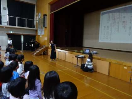 今日は,前回の復習と話し言葉でゆっくり校歌の言い方や意味を確認しました。
