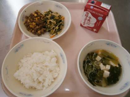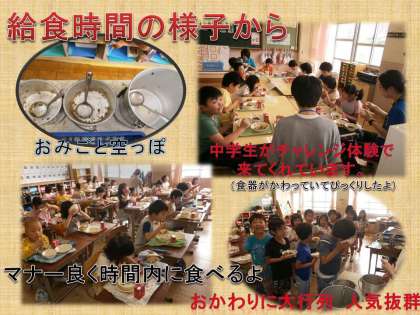 ごはんのカラ容器を回収に来てくださった業者の方も「すごいですね。うれしいです。」と喜んでくださっていました。ごはんにかけたり混ぜたりして食べる献立の日は,やはり食べやすくて人気です。