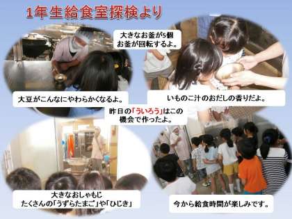 炊きたての大豆のやわらかさ,だしの香りも嗅ぐことができて,給食に対する興味関心がさらにわいたことでしょう。