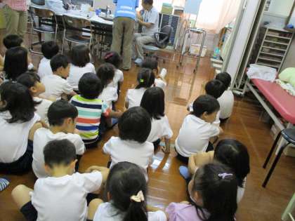 しばらく検診がある日が続いています。きれいに並んでとてもおりこうさんの1年生です。