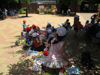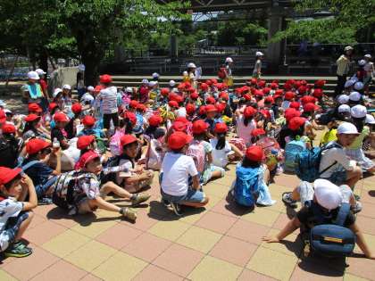2年生が1年生を先導し,グループを組んで動物園を案内していきます。「こっちだよ。」「ゆっくりでいいよ。」と声をかけながら,優しい2年生に連れられて園内をまわりました。お昼は2年生と一緒に食べました。仲良し低学年です。