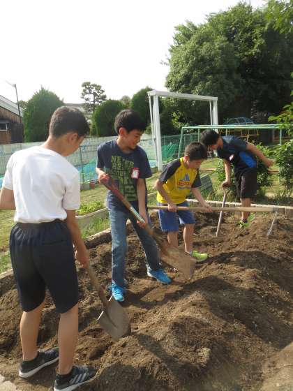 園芸委員会で,学校園を耕しサツマイモを植えました。