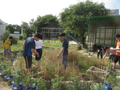 園芸委員会サツマイモを植える