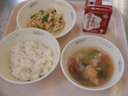 今日の給食は,九州地方の郷土料理『トマトだご汁』でした。