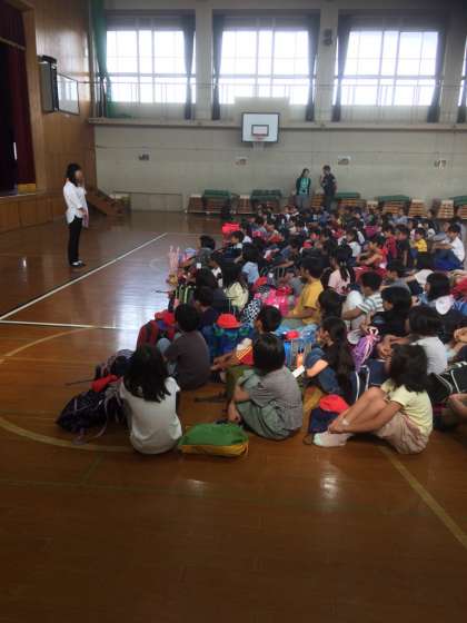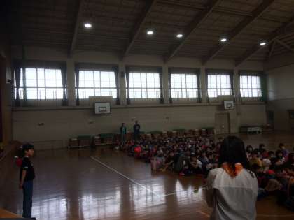 代表児童の挨拶,校長先生からのお話の後,元気に学校を出発しました。