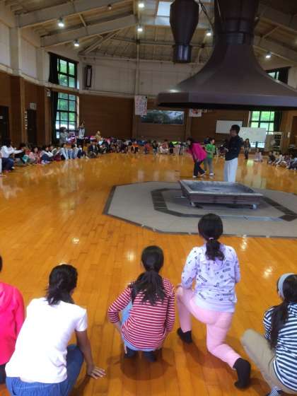 校長先生がドレミの歌を歌っています。子どもたちは,ドレミファソラシの音階に分かれて,自分の音が出たら,元気よく立ち上がります。歌のスピードが速くなって,間違えると大爆笑です。