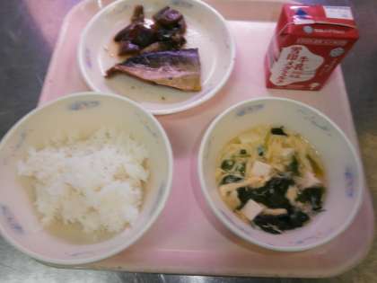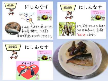 「なすとにしんのあいしょうがよくて ごはんによくあいとてもおいしかったです。かきたまじるのたまごはなめらかでおいしかったです。」5年3組