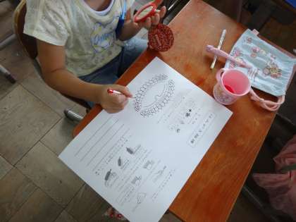 色で自分の磨けていない所を確認しました。