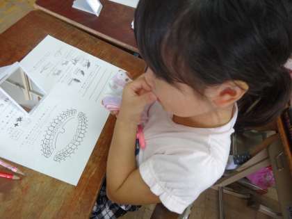 今日は,カラーテスターを使って,みがき残しを調べました。