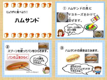 「ハムサンドのぐとコッペパンといっしょにたべたら おいしかったです。」…つくし学級
