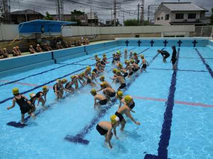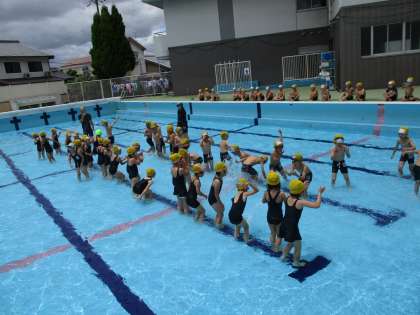 今年度はじめての水泳学習でした。天気にも恵まれ,ドキドキしながら「バディ」や「プールに入るときの約束」を確認しました。笑顔で水を掛け合いながら,水になれて欲しいです。