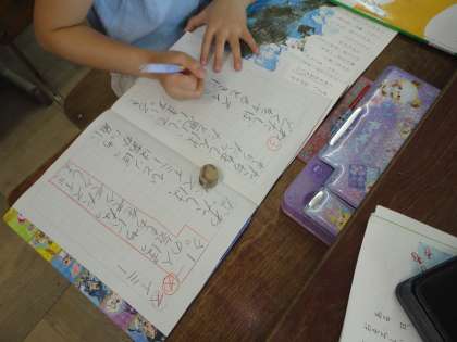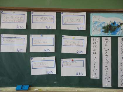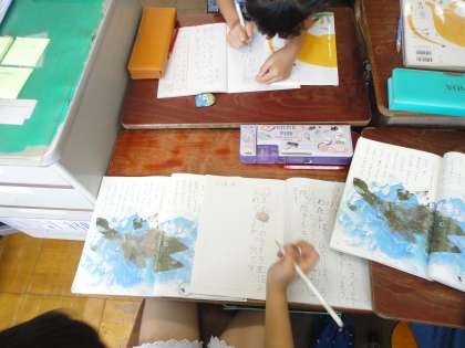 国語科では「スイミー」の学習をしています。登場人物の気持ちを想像し,班で交流しながら自分の考えを深める学習です。自分にない意見や感想を交流することで,少しでも考える視野が広がればと思います。また,感じたことや考えたことを音読に活かせるようにしたいです。