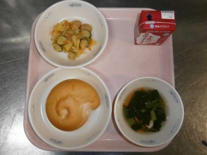 今日の主食は,『バターうずまきパン』でした。パンの種類の中でも子どもたちに人気のパンです。