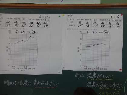 晴れの日,くもりの日,雨の日を比べて考えることで,それぞれの特徴が分かりました。
