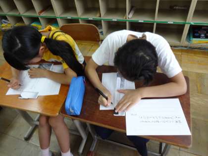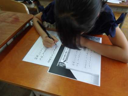 お手本を見ながらていねいに書くことができています。