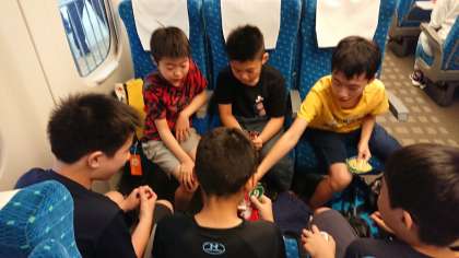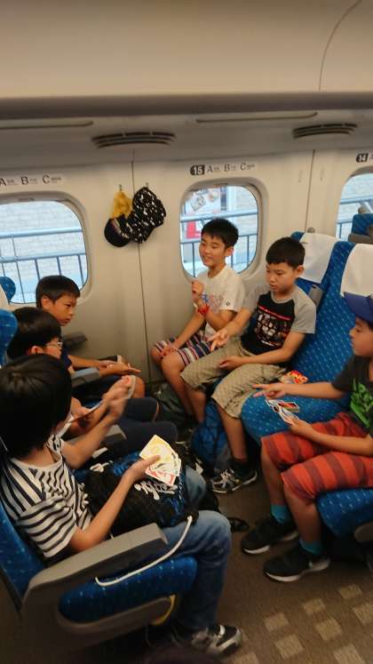 高級感が漂う車内で,持って来たウノやトランプをしたり,みんなでお話ししたりして,マナーを守りながら楽しく過ごしています。