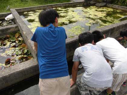 池のメダカも観察し,何を食べるのかな,などと話し合いました。