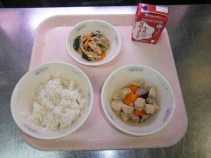 今日の給食は,大豆から作られる「高野豆腐」を使った献立『高野豆腐と野菜のたき合わせ』でした。今日は朝から大変むし暑く,休み明けの月曜日。それでなくとも生活リズムがくずれがちなのですが,伏見南浜小学校の子ども達は,欠席も大変少なく,暑くてもしっかり頑張ることができています。