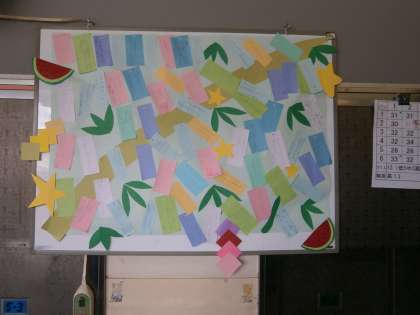 七夕にちなんで 願い事を募集し掲示に使ってもらいました。