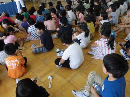 正しい歯みがきのやり方を,みんなで実際に行いました。