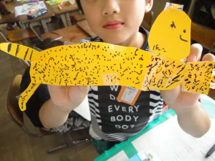 図工科の学習「ストローで こんにちは」をしました。ストローを組み合わせ,動きを工夫して作品を仕上げました。子どもたちの想像力には驚きの連続でした。