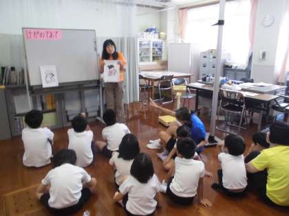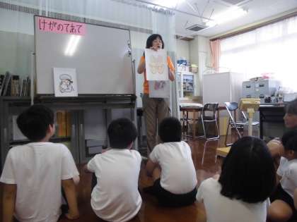 養護教諭の先生からは,けがのてあてについてのお話をしてもらいました。