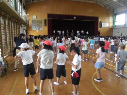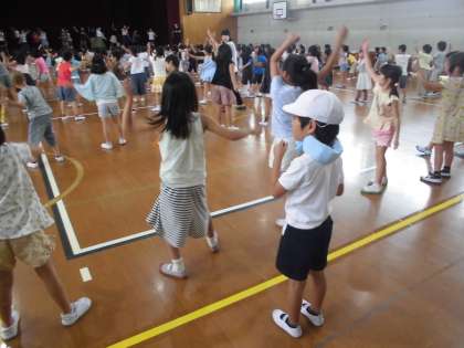 中間休みに,全校ダンスの練習をしました。