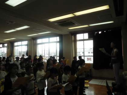 学年の合唱曲「MI・DO・RI」の合唱を学年でしました。曲を聞いて感じたことやイメージしたことを話し合い,そのイメージを大切にしながら歌います。これからも曲を聴きこみながら,イメージもっとふくらませ,きれいな歌声を響かせたいと思います。