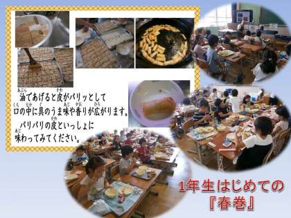 1年生の教室を訪問すると,「おいしい」・「おいしい」・「何個作ったの」・「しいたけきらいやけどはるまきはたべられた。おいしい」・「めっちゃおいしい」・「今度はいつ出る」と嬉しい声がたくさん聞こえてきました。